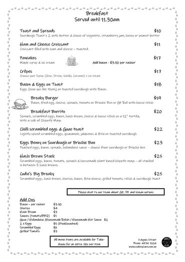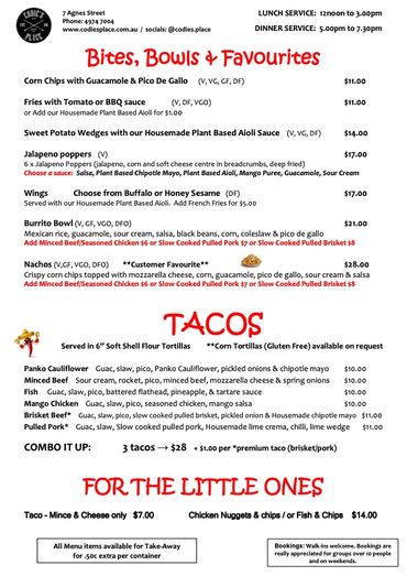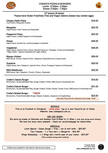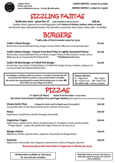 Codie's Place is a superbly located Cafe/Restaurant/Bar in Agnes Water/1770