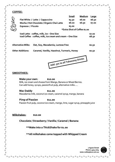 Codie's Place is a superbly located Cafe/Restaurant/Bar in Agnes Water/1770